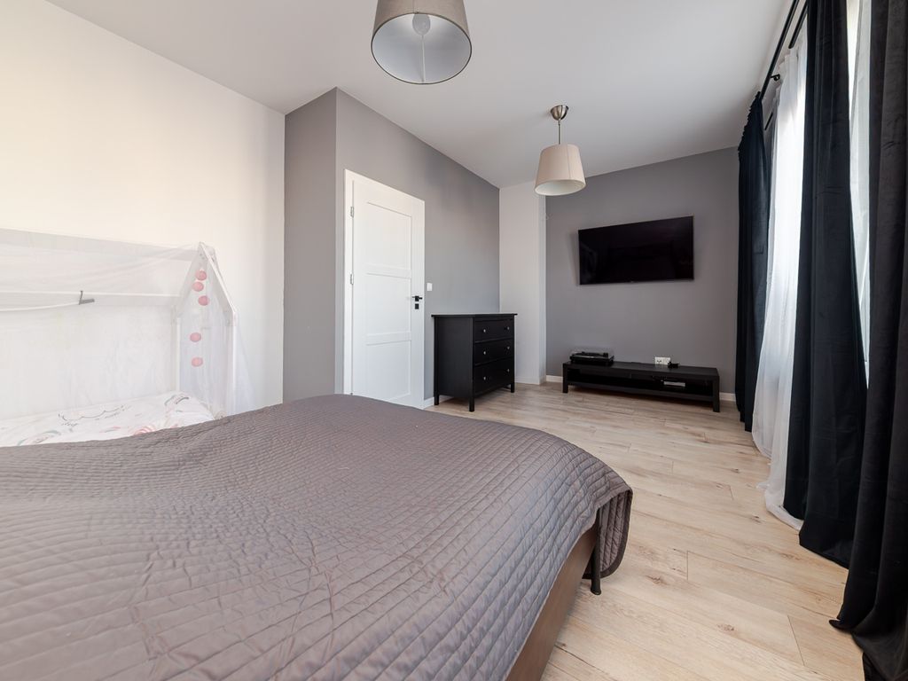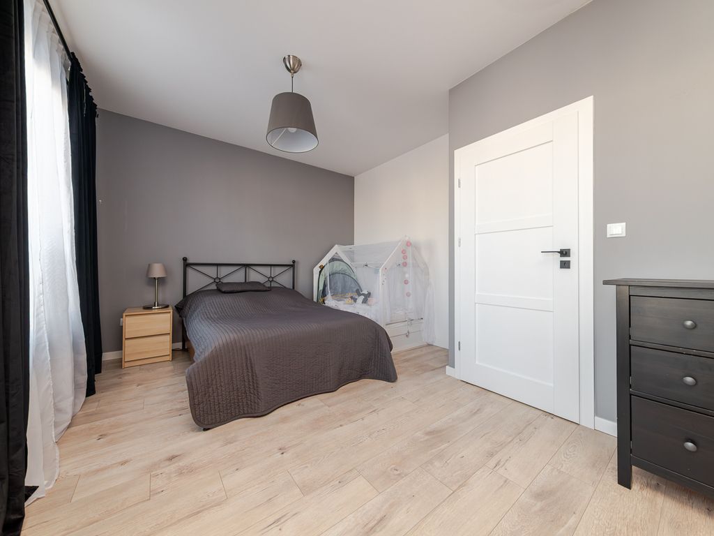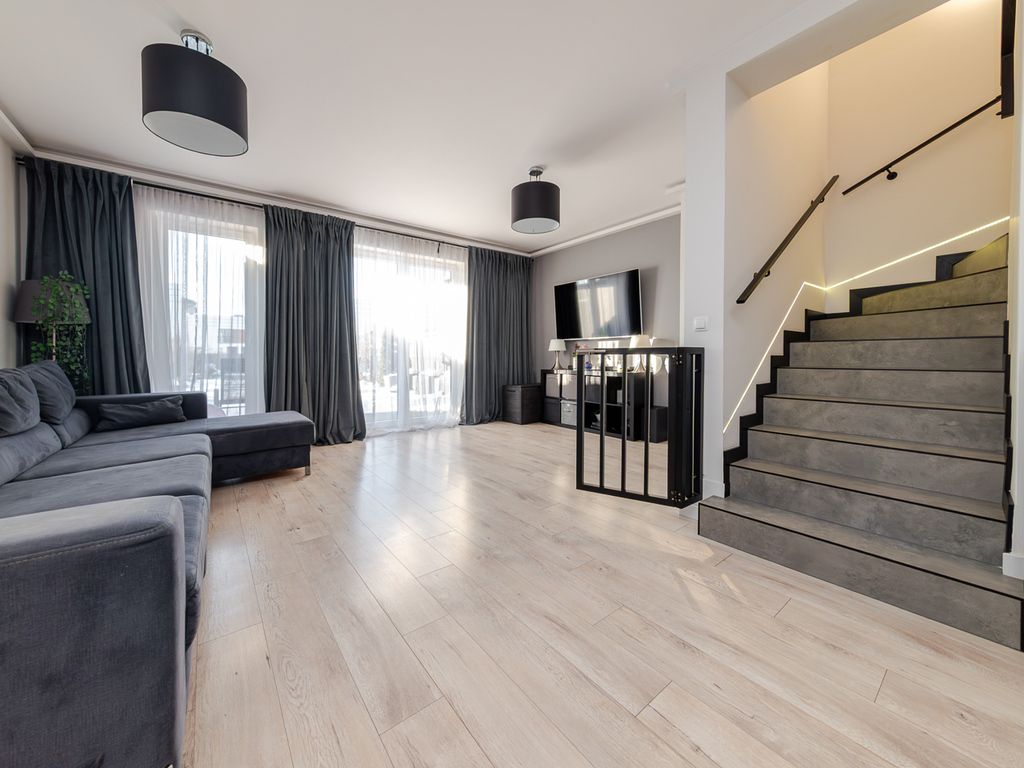 Dom ma dwa funkcjonalne poziomy. Na parterze znajdziesz przestronny salon połączony z aneksem kuchennym, idealny do spędzania czasu z rodziną i przyjaciółmi, oraz łazienkę. Salon jest naprawdę duży dzięki temu, że garaż jest poza bryłą budynku - tak jak to zazwyczaj jest w segmentach. Dzięki temu nie zabiera on dziennej przestrzeni do życia. To naprawdę bardzo ważne. Przyjedź zobacz, oceń sam. Dodatkowo latem salon możemy otworzyć na duży ogród dzięki temu powiększając strefę przyjemnego spędzania czasu. Piętro to strefa prywatna z trzema sypialniami, łazienką i balkonem. Dom ogrzewany jest gazowo.