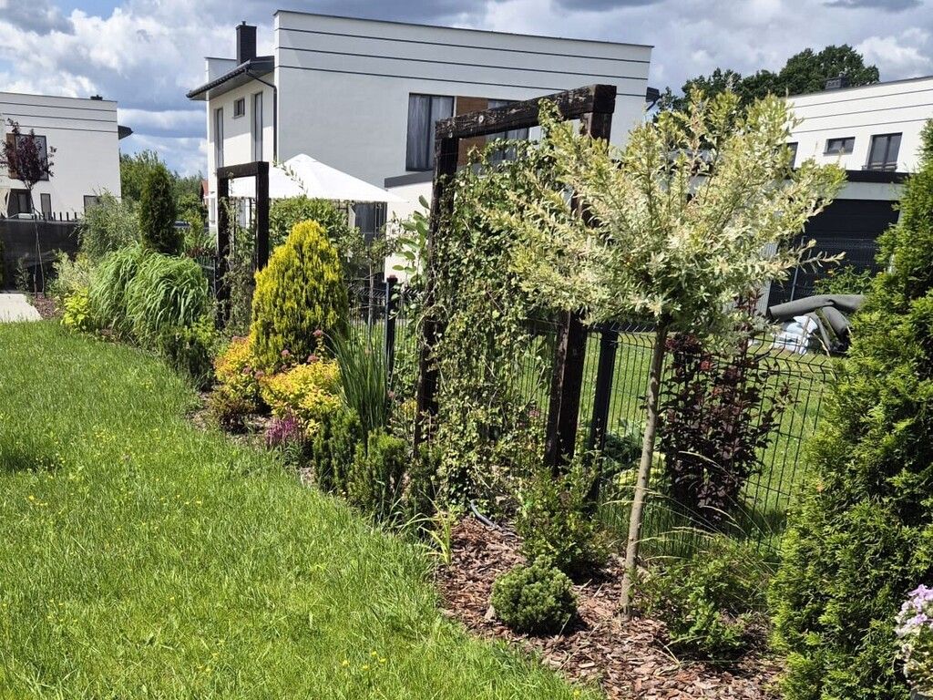 Działka o powierzchni 512 m² to prawdziwa perełka. Ogród ( ok 300 m²) został zaprojektowany i zrealizowany przez projektantkę z myślą o wygodzie – wyposażono go w automatyczny system nawadniania, który możesz sterować nawet z telefonu. Profesjonalny drenaż (dwa drenaże odprowadzające wodę a to nie reguła wśród podobnych ofert i w okolicy) gwarantuje, że Twoje rośliny (dużo różnych nasadzeń) zawsze będą miały idealne warunki do wzrostu, niezależnie od pogody. To doskonałe miejsce na popołudniowy relaks czy zabawę z dziećmi.