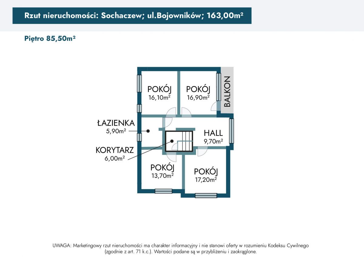 W skład nieruchomości na piętrze wchodzi: