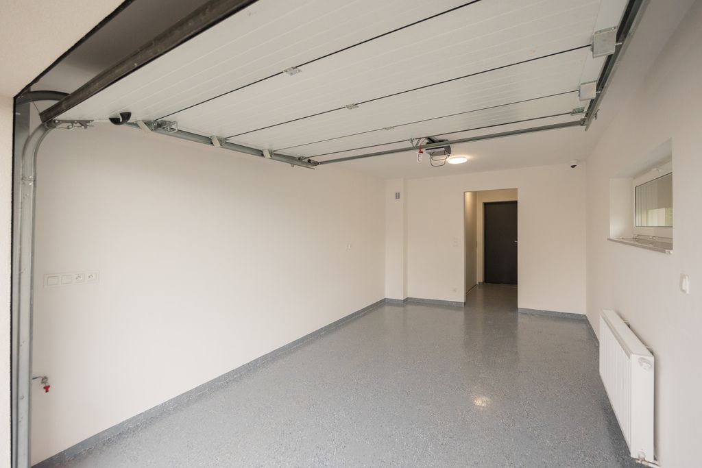 W bryle budynku mieści się ogrzewany garaż jednostanowiskowy z posadzką z żywicy epoksydowej i automatyczną bramą sterowaną pilotem.