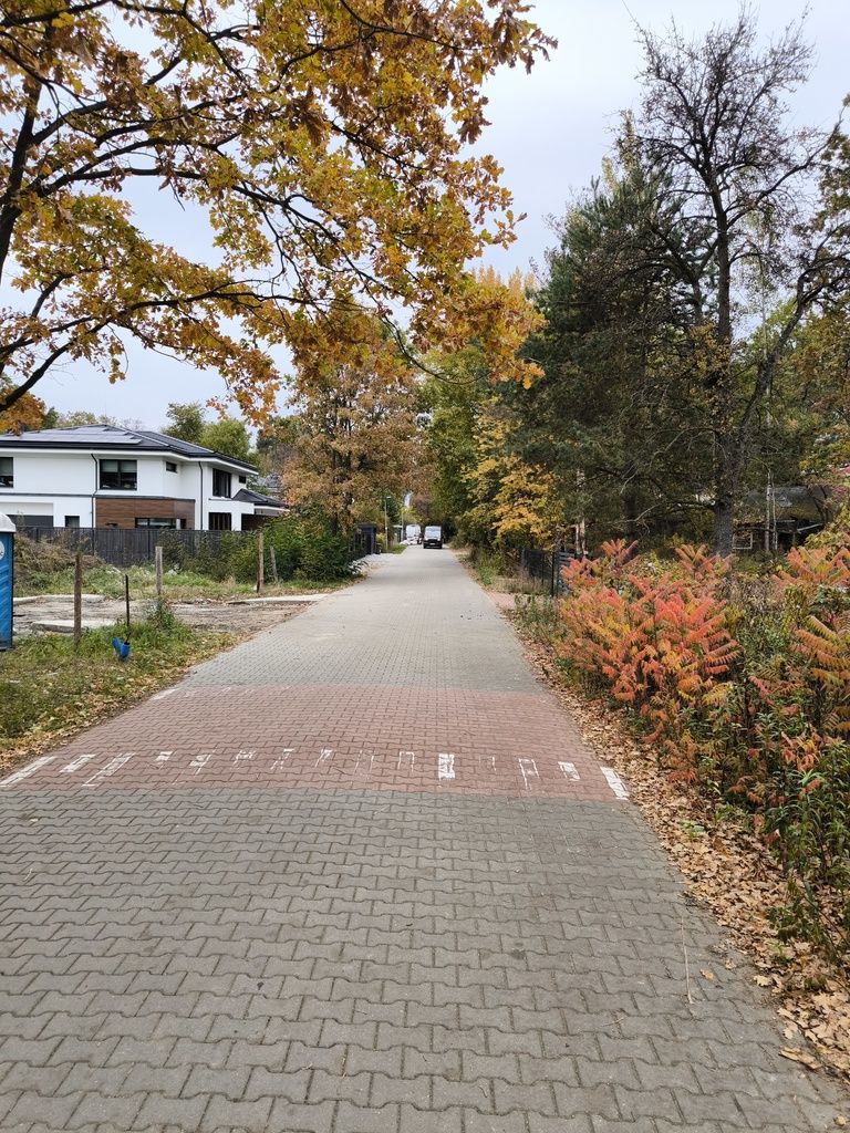 Ulica jest wybrukowana, otoczona lasem i kończy się wejściem do niego, co zapewnia prywatność i kameralną atmosferę.