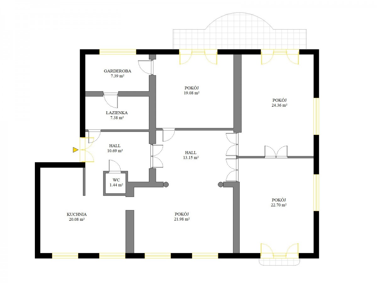 Po wejściu reprezentacyjną, wyłożoną kamieniem marmurowym klatką schodową do lokalu zaprasza nas hall o powierzchni 10,69 m2. Posiada szafy wnękowe i miejsce do zdjęcia okryć. Z hallu wejście do toalety o powierzchni 1,44 m2.