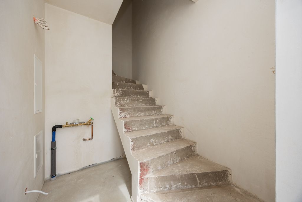 - installations: ventilation, water and sewage, heating (with underfloor heating and heat pump, electrical (without sockets and switches), low-voltage (intercom, alarm wiring, fiber optic and antenna wiring),