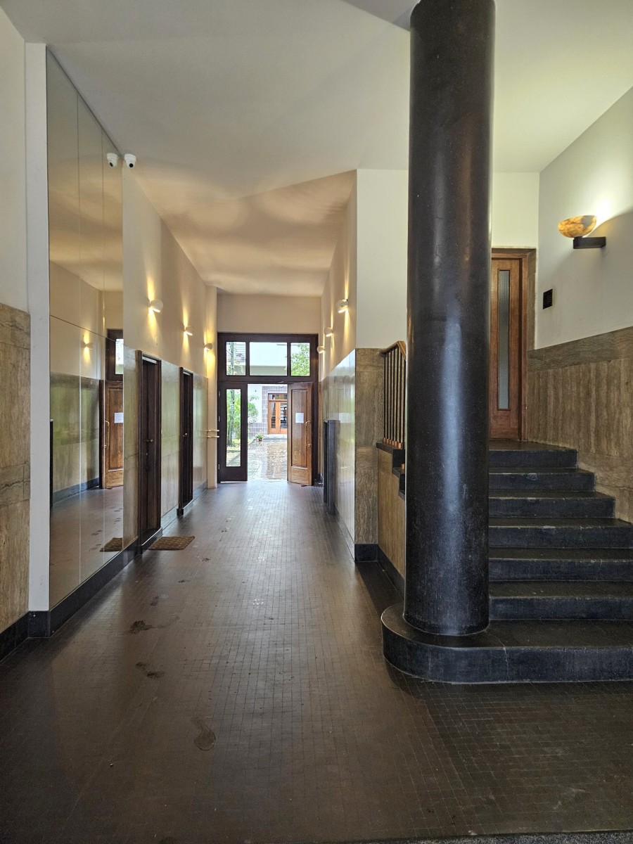 Wnętrze Kamienicy: Reprezentacyjny hall wejściowy wykończony marmurem i lustrami, potwierdza elitarny charakter adresu.
