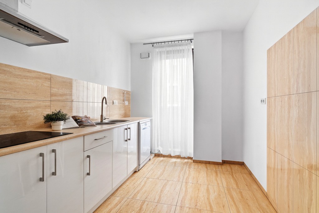- Osobna kuchnia z balkonem francuskim - wymarzone miejsce na kawę o świcie i gotowanie z rozmachem.