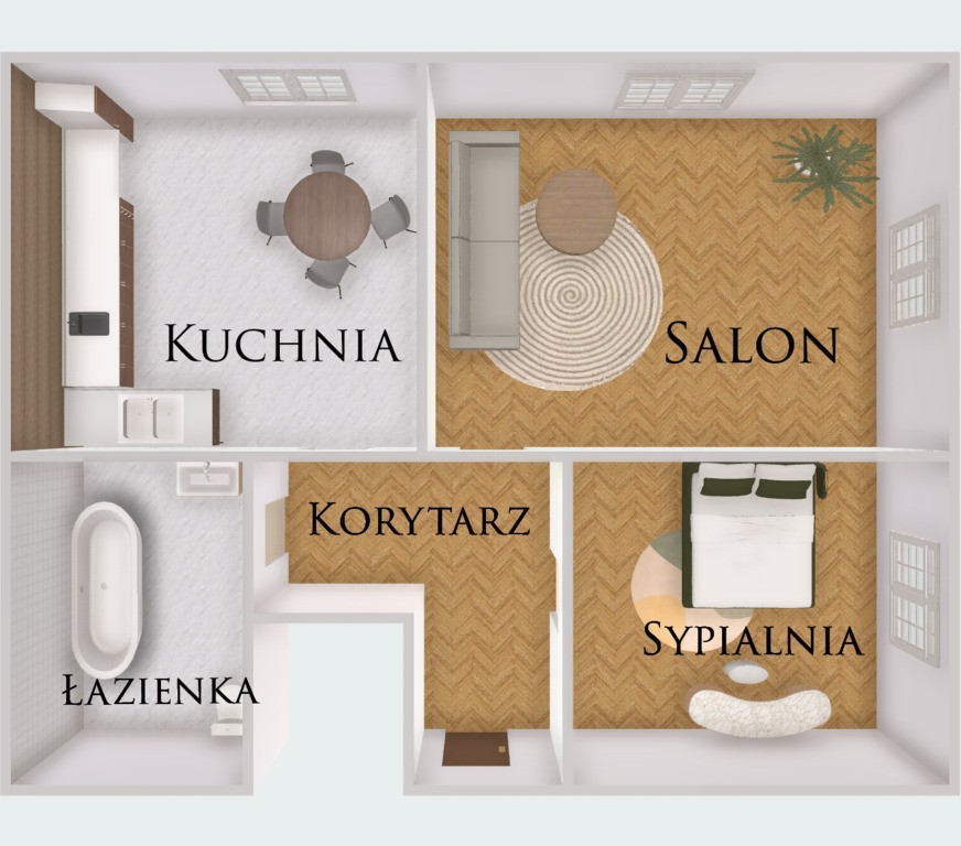 - Pod panelami czeka perełka - oryginalny parkiet dębowy ułożony w jodełkę, w świetnym stanie, gotowy, by przywrócić mu dawny blask.