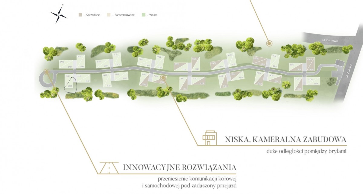 Niska zabudowa, współczesna architektura i elegancka przestrzeń wspólna podkreślają prestiż inwestycji i tworzą idealne miejsce do życia w rytmie natury.