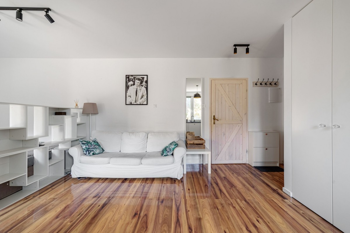 Na sprzedaż wyjątkowa kawalerka o powierzchni 30 m² typu open space, położona na parterze kameralnego, nowoczesnego budynku z 2020 roku w prestiżowej części Wilanowa Królewskiego - przy cichej, spokojnej ulicy w otoczeniu zieleni