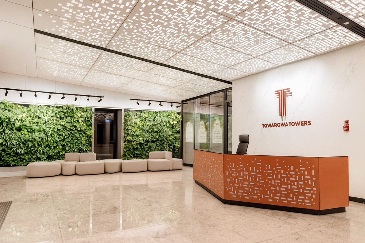 - Wysokiej klasy strefy wspólne: taras rekreacyjny, lounge, sale do spotkań biznesowych, klub fitness