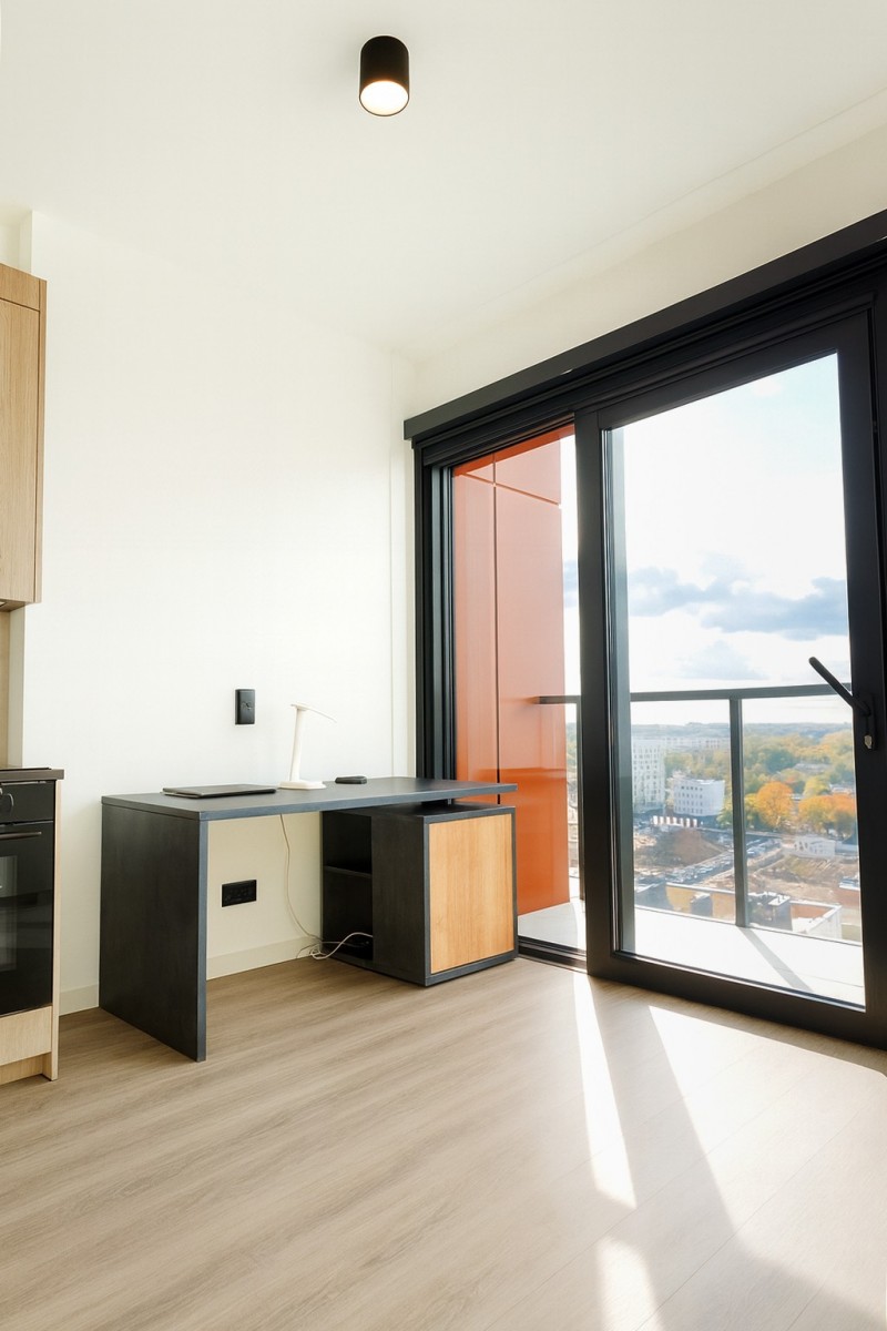 - Nowoczesne wieżowce mieszkalne z panoramicznymi oknami i spektakularnym widokiem na centrum miasta