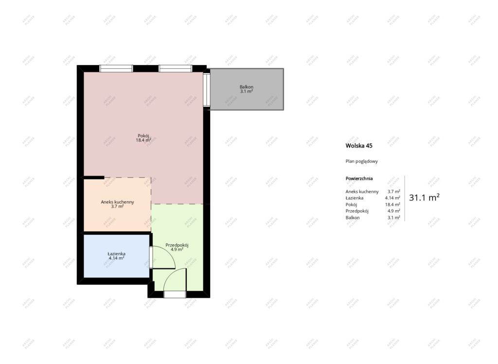 - Powierzchnia:31,31 m2