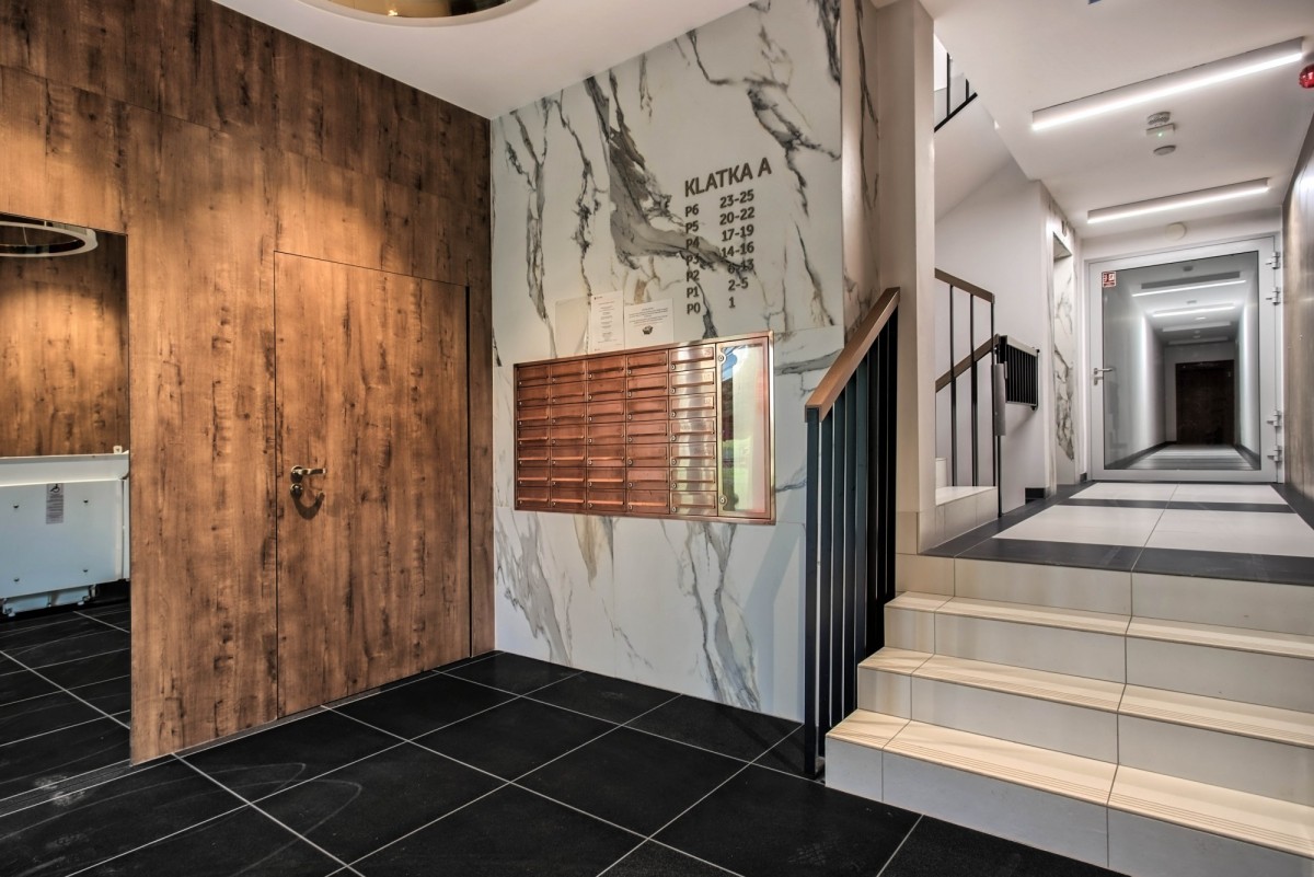 Apartament o powierzchni ok. 68 m² usytuowany jest na 5. piętrze nowoczesnego, sześciopiętrowego budynku z 2023 roku. Wysokość pomieszczeń (268 cm) oraz duże przeszklenia gwarantują przestrzeń, światło i poczucie elegancji.