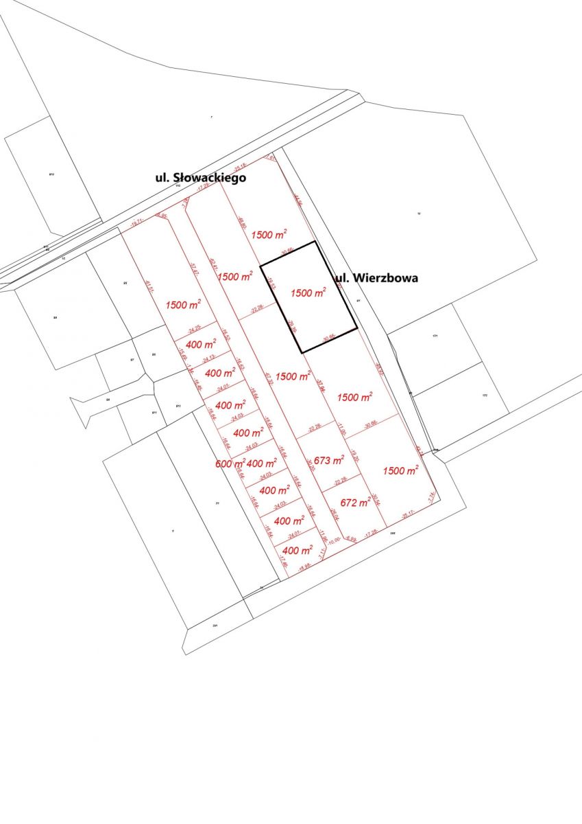 Przedmiotem sprzedaży jest działka budowlana o pow. 1500 m2 objęta Miejscowym Planem Zagospodarowania Przestrzennego - zabudowa jednorodzinna lub jednorodzinna dwulokalowa. Działka częściowo zalesiona. Działka położona bezpośrednio przy ul. Wierzbowej. Możliwość zlokalizowania dwóch niezależnych wjazdów na działkę. W ulicy gaz, kanalizacja, wodociąg i prąd.