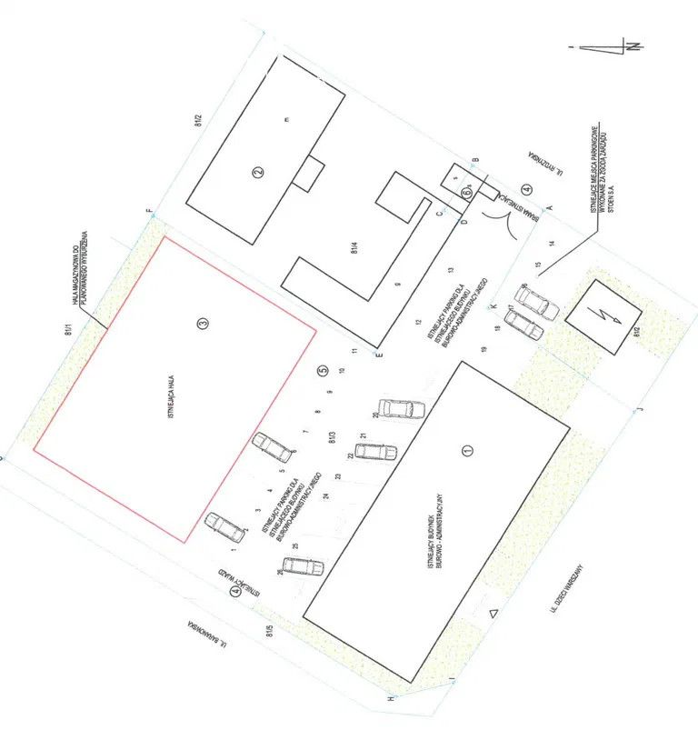 - możliwość rozbudowy i/lub przebudowy budynku biurowo-administracyjnego (warunki zabudowy)