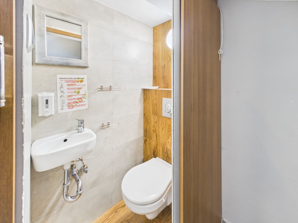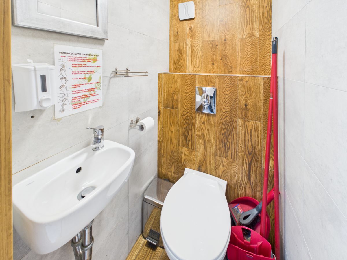 Lokal składa się z głównej sali, małej kuchni, magazynku, wc dla klientów i osobnego wc i małego pomieszczenia socjalnego dla personelu.