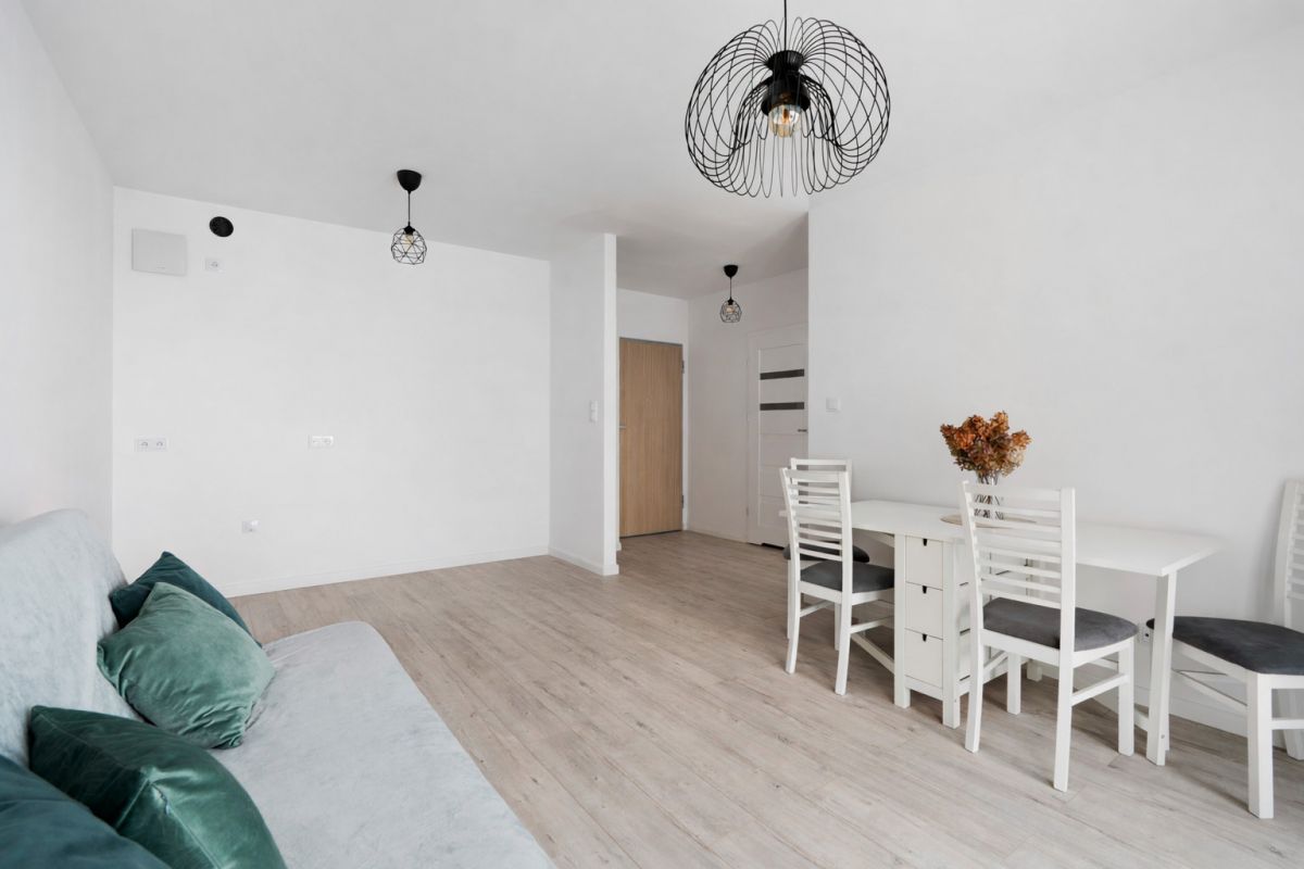 Lokal jest wykończony, o funkcjonalnym układzie, który dobrze sprawdza się przy tym metrażu. Przestrzeń została zaplanowana w sposób praktyczny, z wyraźnym podziałem na część dzienną i prywatną. Balkon stanowi dodatkową przestrzeń do wypoczynku.