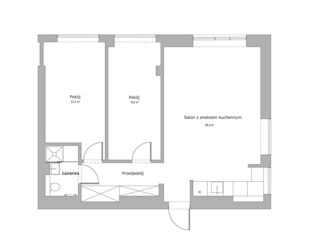 Mieszkanie o powierzchni 57,2 m² składa się z: