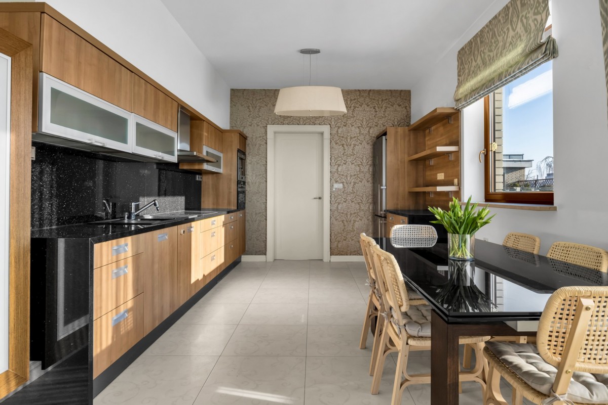 - oddzielna kuchnia z wyjściem na taras oraz oddzielną pralnią